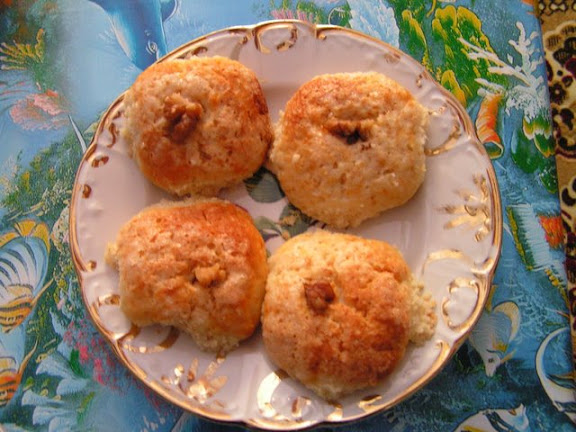Yumurtanın beyazını ayırıp geri kalan malzemeyi yoğurt, kulak memesi kıvamında (bu ifade bana her zaman komik gelmiştir. Kıvama geldiğini anlamak için bir elimiz kulağımızda hamur yoğurayacağız) bir hamur yapılır. Hamurdan minik parçalar koparılır, yuvarlarınır ve tepsiye dizilir. Ayrılan yumurta beyazı iyice çırpılır, kurabiyelerin üzerine sürülür. Yumurtaların üzerine şeker serpilir. Şekerpare yapar gibi ortalarına ceviz/fındık veya badem konulur. 150 C fırında 20 dakika pişirilir.